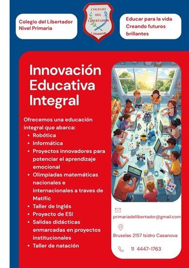 En el Nivel Primario del Colegio del Libertador acompañamos a nuestros estudiantes en una etapa fundamental de su formación, brindándoles una educación integral que combina conocimientos, valores y habilidades para su desarrollo personal y académico.